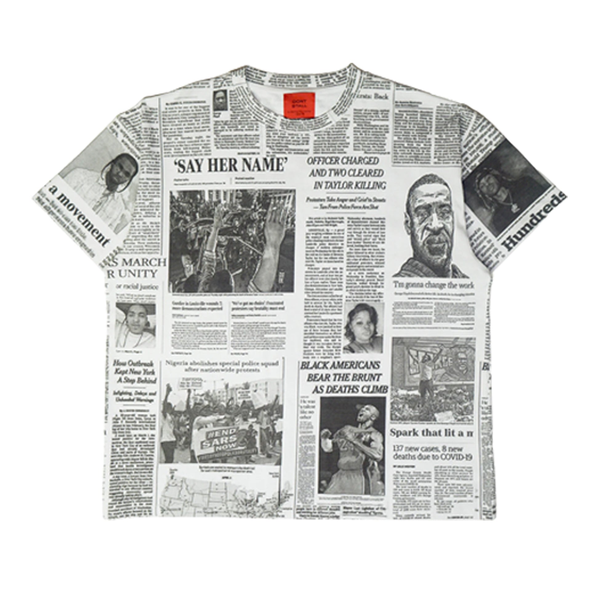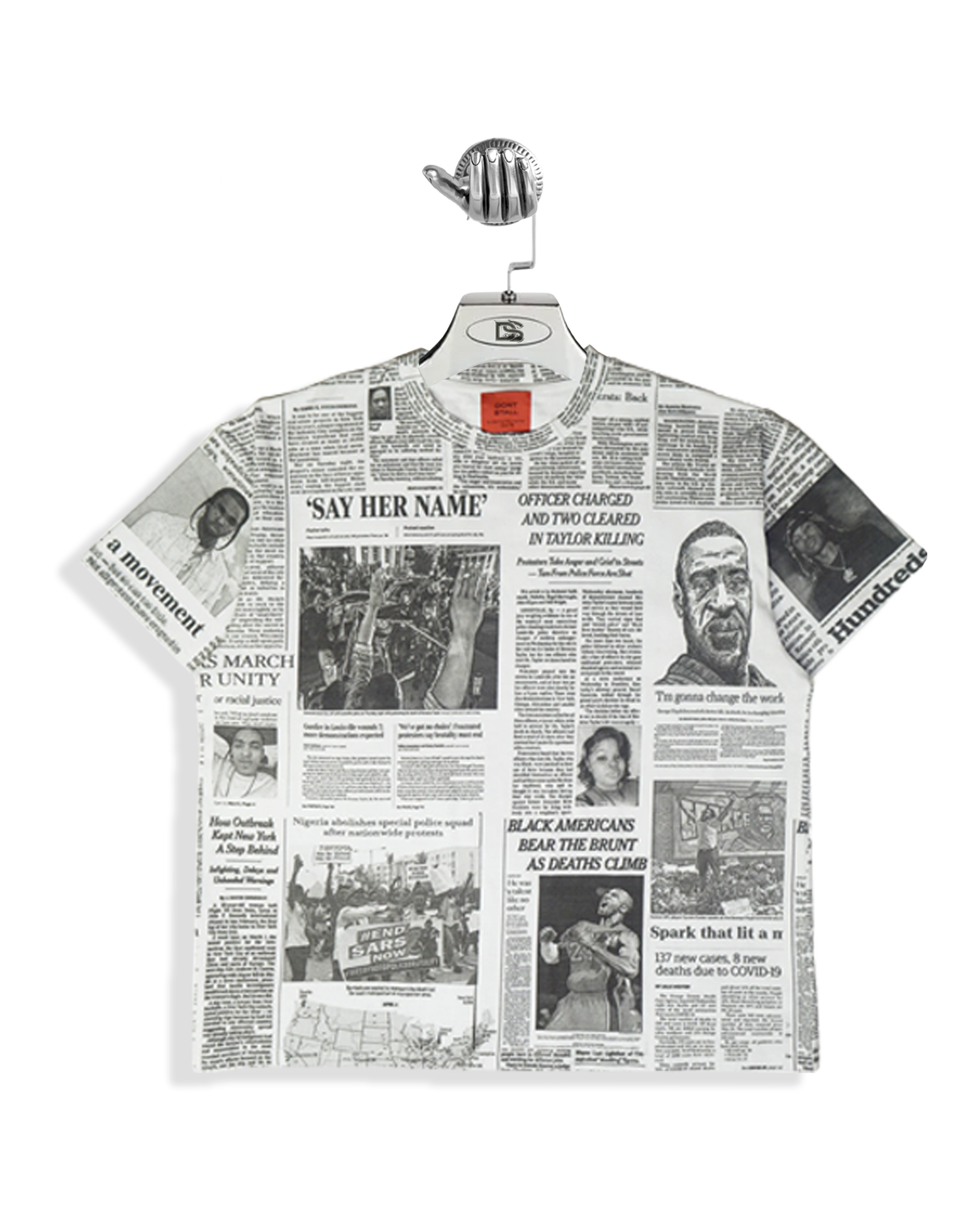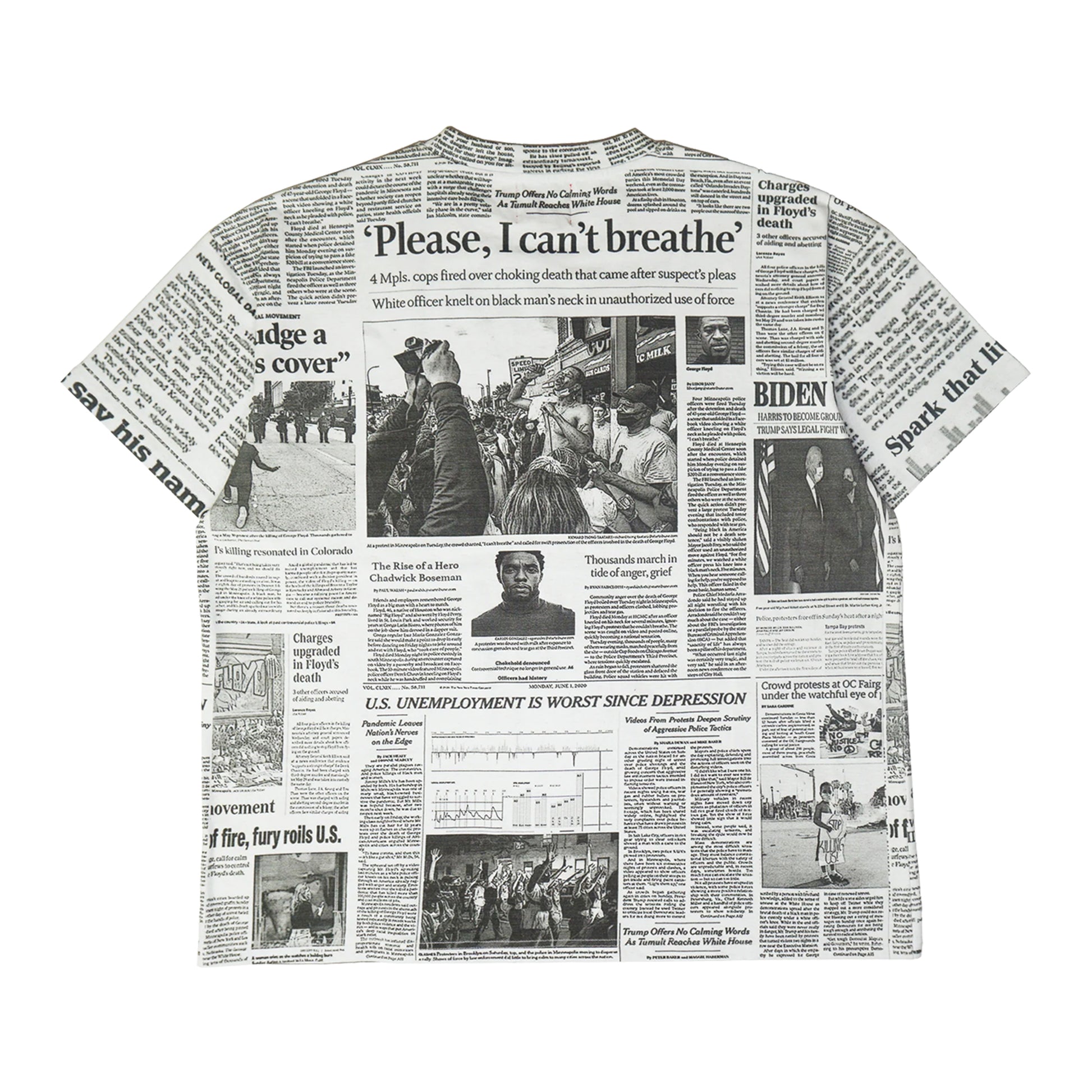 2020 was a year that changed the course of many lives. This 2020 Newspaper Tee holds many of the events that caused this change and will help to aid in the progress of many lives. In our culture the devastation of 2020 paved a new mindset of unity and support. To be apart of bringing awareness and supporting the culture we created this piece and a significant amount of the proceed will Color of Change. We will continue to to invest in the mindsets of this new era and uphold a legacy that'll help change the course of generations to come.